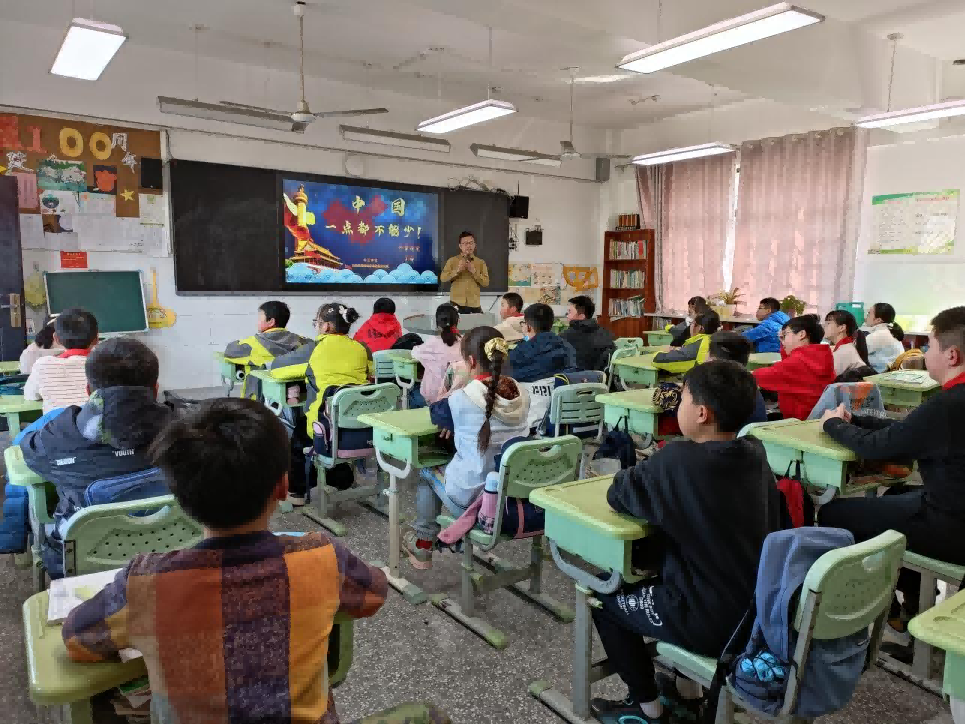 丁海博士走进六(1)班,为同学们执教《中国一个都不能少》,向学生们详细介绍中国领土、怎样保卫领土完整等内容,学生们纷纷表示中国领土不容侵犯,更加坚定爱国主义情怀和报效祖国的热情。方惠京博士通过BP神经网络为学生讲解机器是如何思考的,并现场使用chat GPT与聊天机器人进行对话,精彩的讲授课件让学生对人工智能产生了极大的兴趣,感受到巨大的科技力量。通过授课,两位博士在孩子们心中种下爱国、科学的种子。
