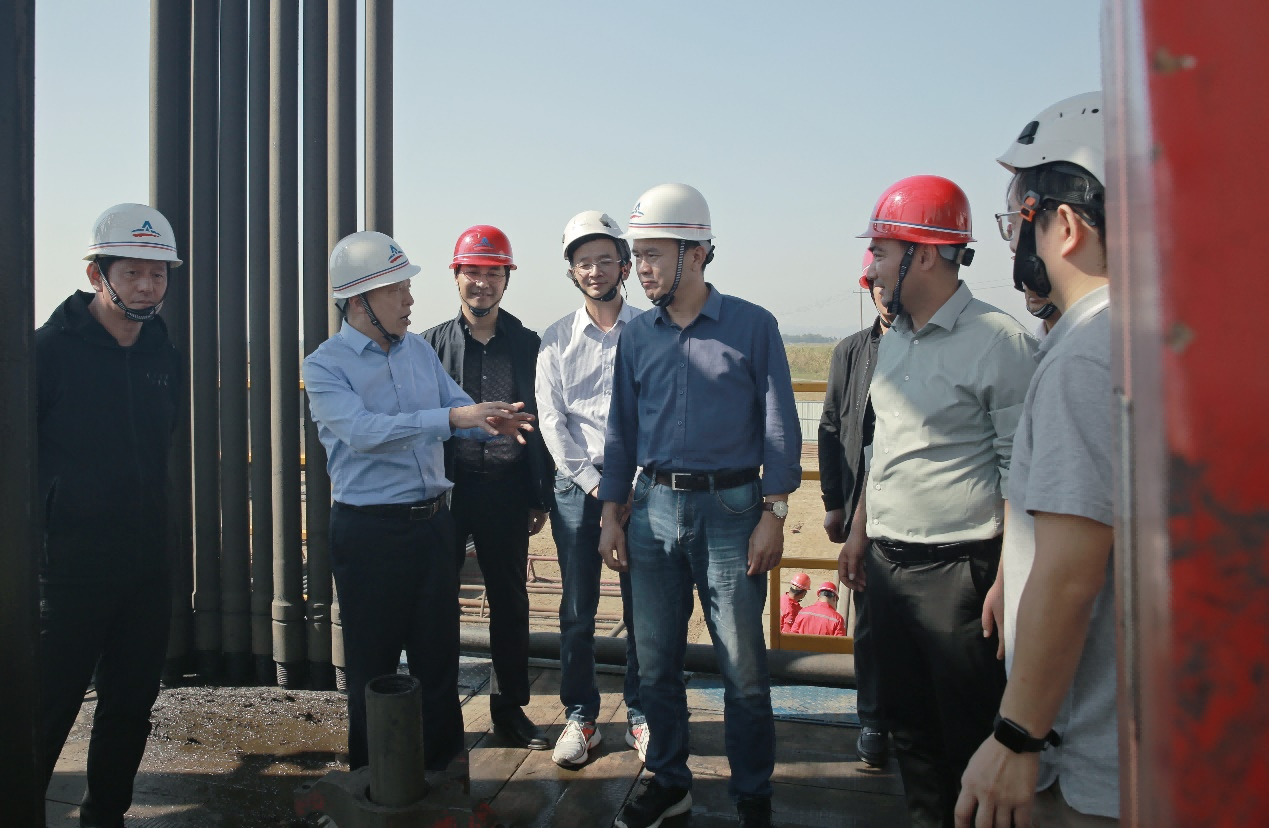 10月17日,省自然资源厅党组成员、副厅长孙林华,局党委委员、副局长宋长兵一行赴勘查研究院 “谢家集-上窑煤层气预探”项目XY-1井现场调研指导。