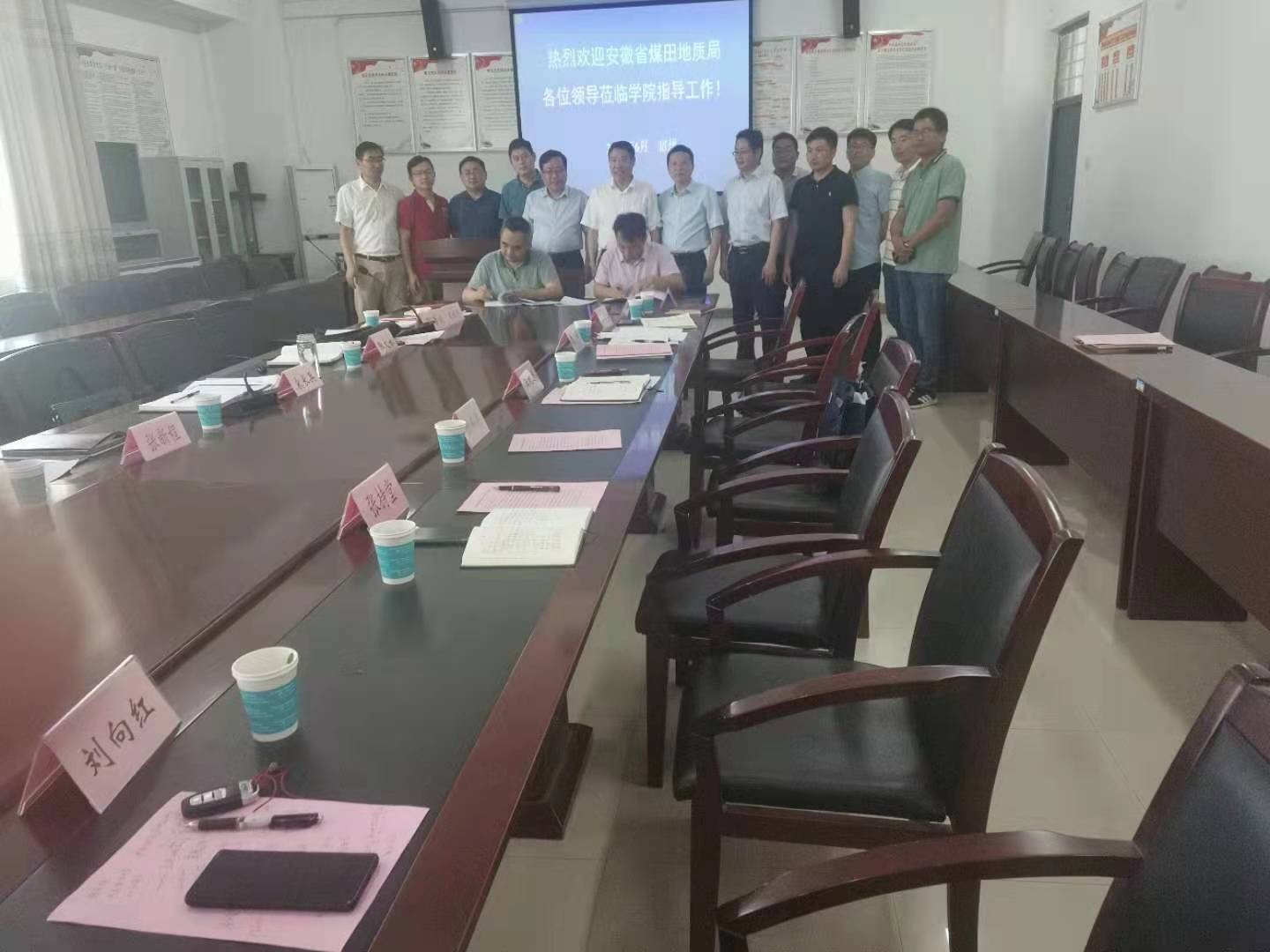 会上,勘查研究院张文永院长详细介绍了安徽省绿色矿山工程中心的创建过程及今后的重点发展方向,资源与土木工程学院陈松院长重点介绍了国家煤矿水害防治工程技术研究中心建设情况与近些年来取得的主要成果。双方学术带头人、技术骨干做了深入的交流,增进了双方情感与友谊。省煤田地质局勘查研究院与宿州学院资源与土木工程学院签署了战略合作协议,以进一步加强双方交流合作和成果转化。